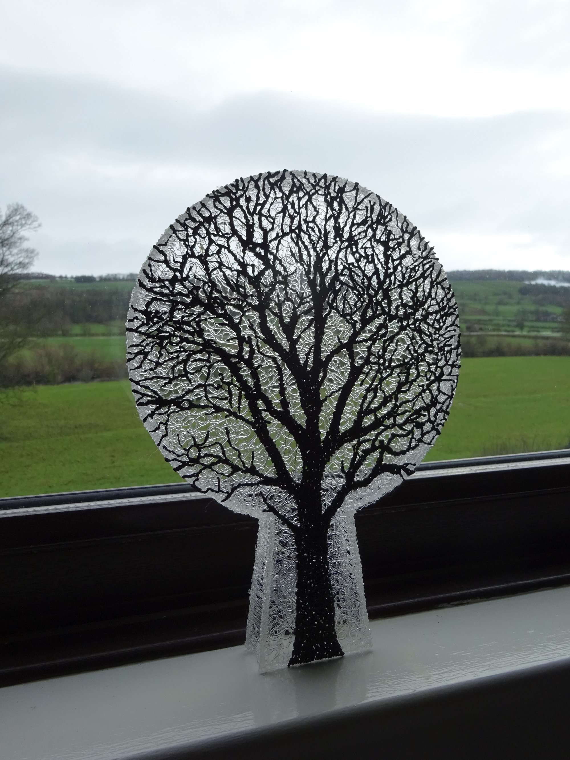 I've used transparent filament to make the hollow sculpture and the tree design was drawn in recycled black PLA on one side.