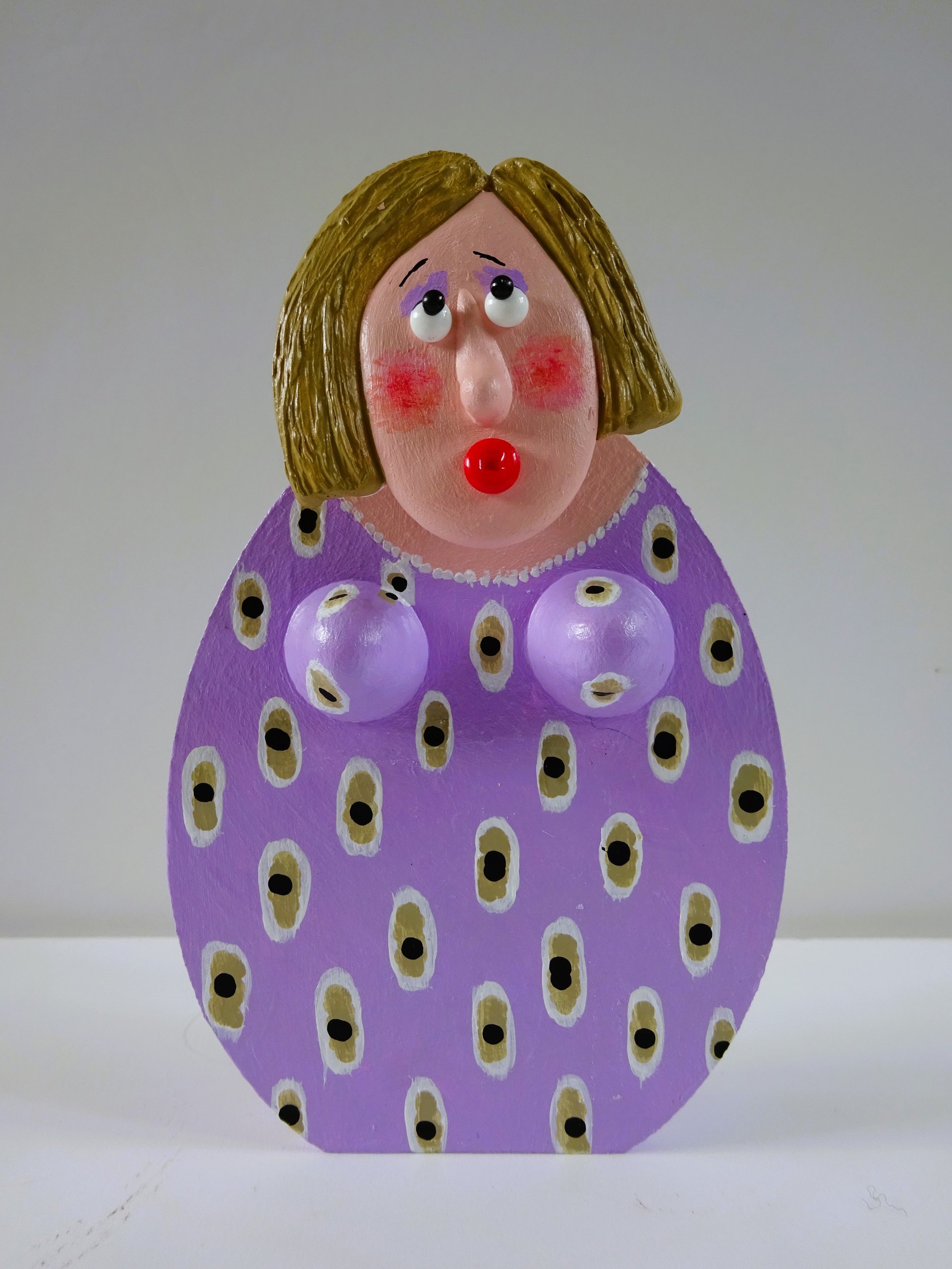 This is Tilly, one of my charming Wensley Dames. These fun, freestanding sculptures have a wooden body and the head is on a wobbly spring. They are all handmade in my workroom in the heart of beautiful Wensleydale.