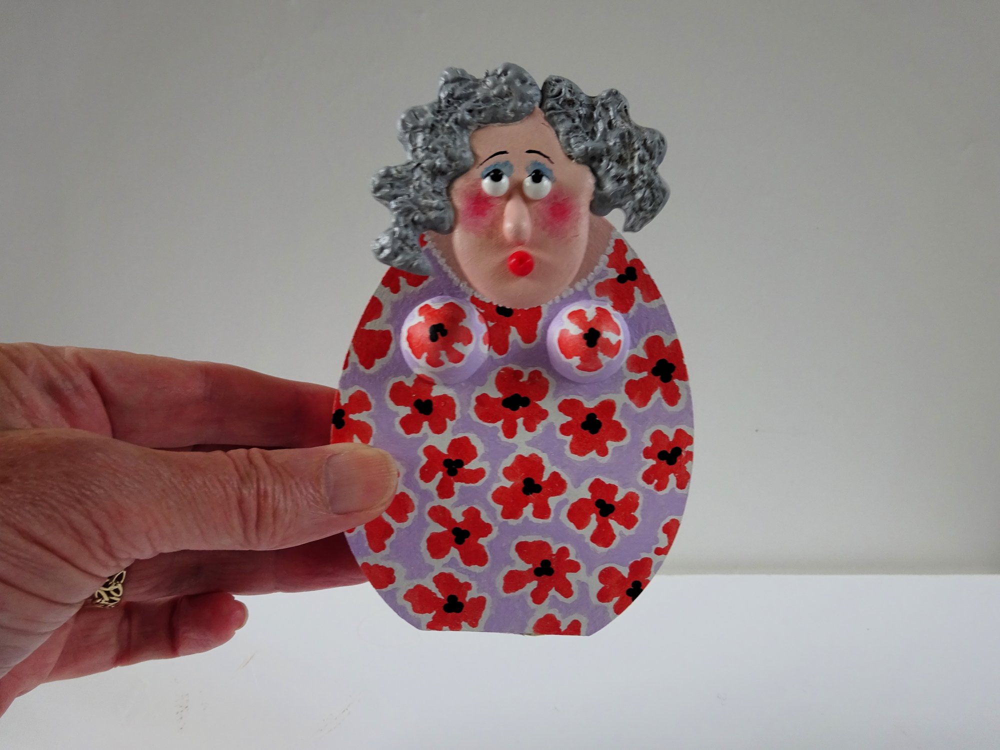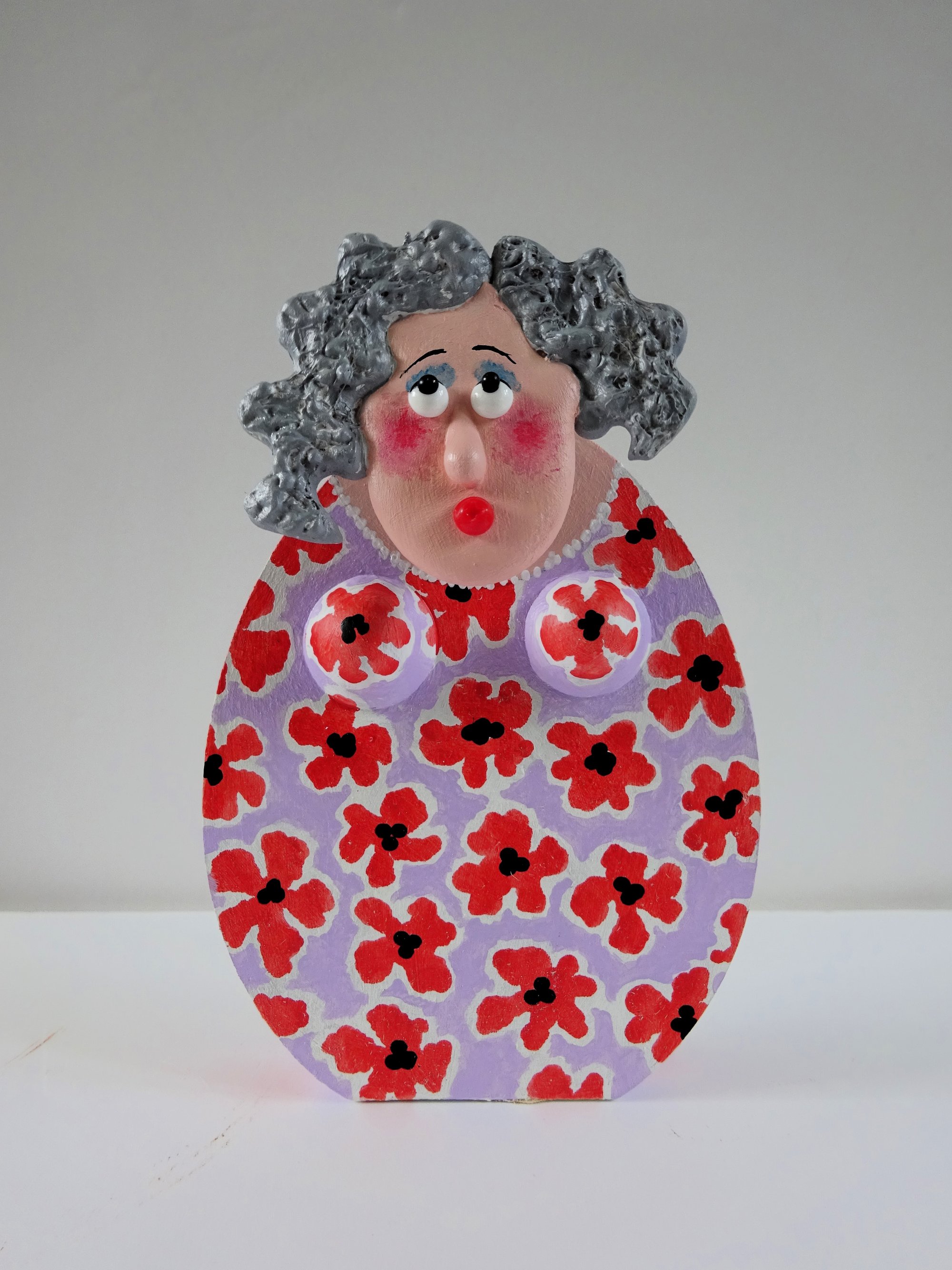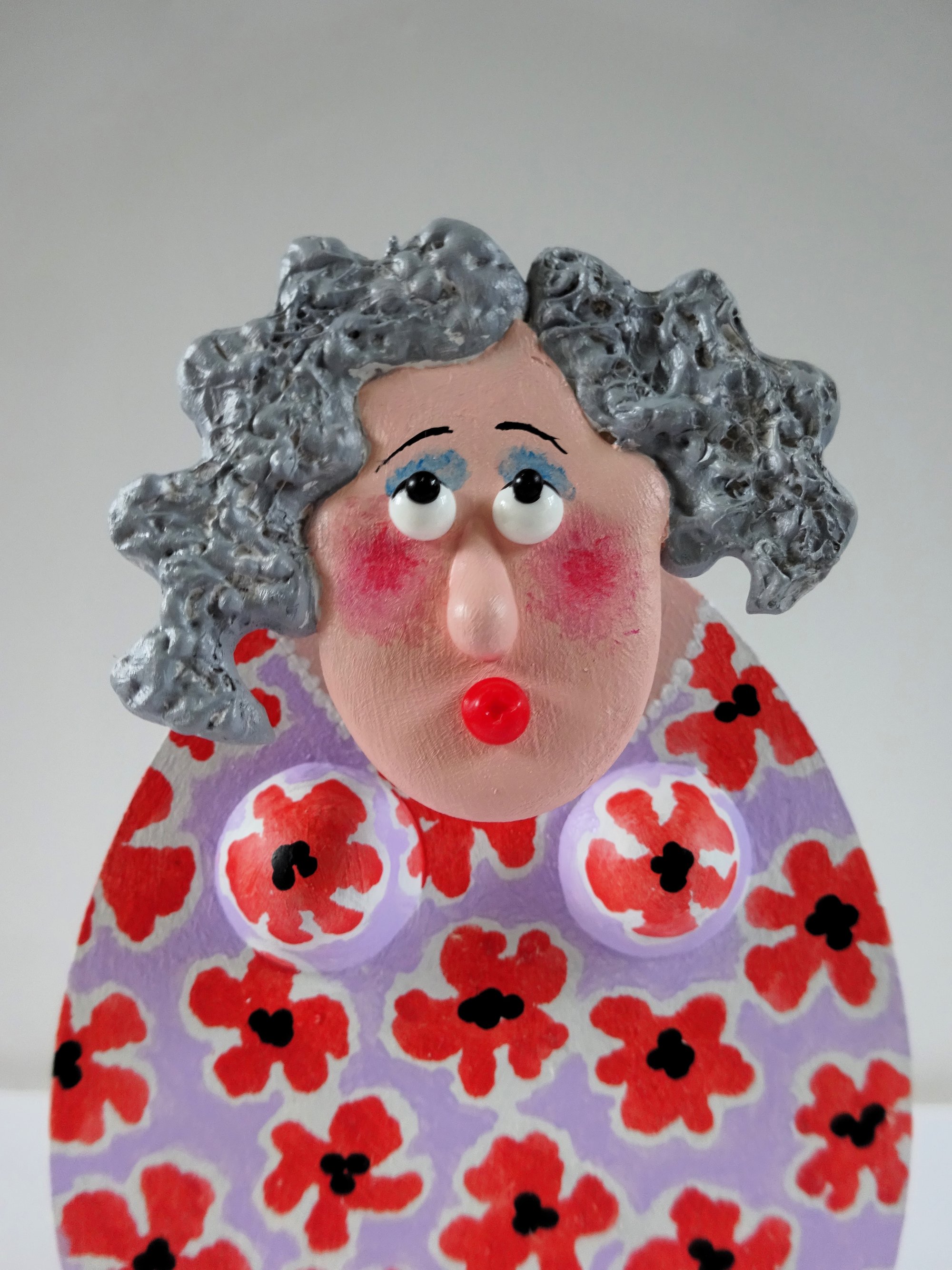 This is Betty, one of my charming Wensley Dames. These fun, freestanding sculptures have a wooden body and the head is on a wobbly spring. They are all handmade in my workroom in the heart of beautiful Wensleydale.