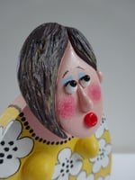This is Gina, one of my charming Wensley Dames. These fun, freestanding sculptures have a wooden body and the head is on a wobbly spring. They are all handmade in my workroom in the heart of beautiful Wensleydale.