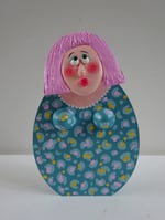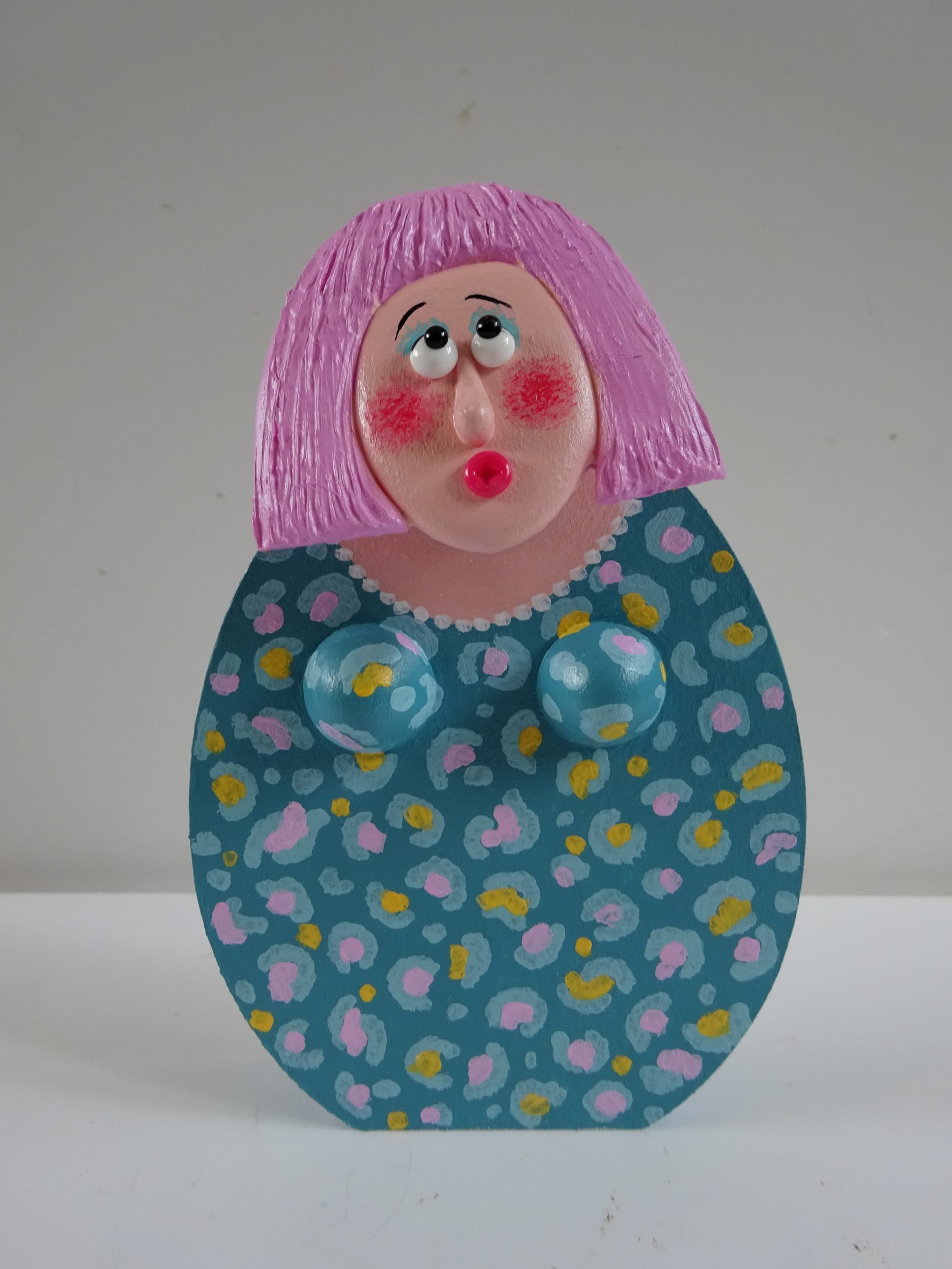 This is Petunia, one of my charming Wensley Dames. These fun, freestanding sculptures have a wooden body and the head is on a wobbly spring. They are all handmade in my workroom in the heart of beautiful Wensleydale.