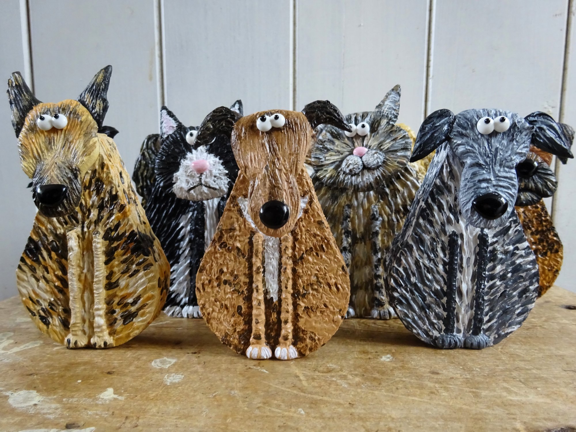 My pet sculptures are all roughly 11cm high and each one is £30.